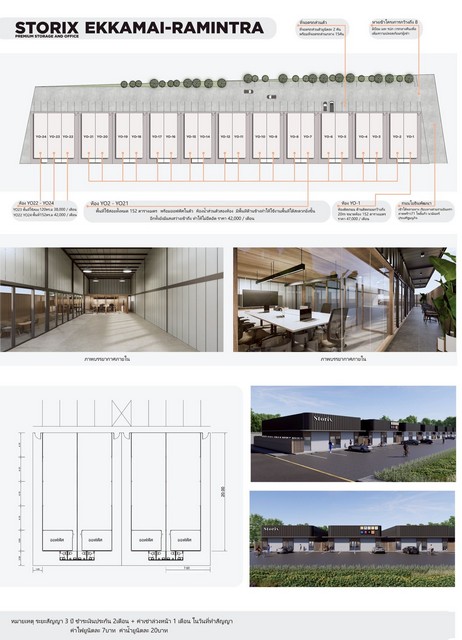 ให้เช่าโกดังสร้างใหม่ มินิมอล เรียบหรู ทำเลดี พร้อมใช้งาน โยธินพัฒนา 3 เลียบทางด่วนรามอินทรา ลาดพร้าว 71 ซอยโพธิ์แก้ว ถนนนวมินทร์ ถนนประเสริฐมนูกิจ รหัส P646 หมายเหตุ: โครงการอยู่ระหว่างก่อสร้าง พร้อมเข้าอยู่กลางเดือนมีนาคม ชอบสามารถจองได้เลย - ให้เช่าโกดัง ออฟฟิศ มินิมอล เรียบหรู ทำเลดี พร้อมใช้งาน โยธินพัฒนา 3 เลียบทางด่วน รายละเอียดขนาดและราคา 1. ราคาเช่า 38,000 บาท/เดือน ขนาด 120 ตารางเมตร (7.6 × 20) ว่าง 1 ยูนิต 2. ราคาเช่า 42,000 บาท/เดือน ขนาด 152 ตารางเมตร (7.6 × 20) ว่าง 21 ยูนิต 3. ราคาเช่า 47,000 บาท/เดือน ขนาด 152 ตารางเมตร (7.6 × 20) ว่าง 1 ยูนิต - ค่าไฟ 7 บาท / unit - ค่าน้ำ 20 บาท / unit - สัญญาขั้นต่ำ 3 ปี ประกันการเช่า 2 ล่วงหน้า 1 - จดทะเบียนพาณิชย์ได้ - ที่จอดรถยูนิตละ 2 คัน - ถนนโครงการกว้าง 8 เมตร - มีห้องน้ำ ที่ตั้ง แขวงคลองจั่น บางกะปิ กรุงเทพมหานคร 10240 ติดต่อ คุณช่อผกา 0616198565 LINE 0616198565 หากไม่รับสาย รบกวนขอความกรุณาลูกค้า @line ทิ้งรูปและข้อมูลไว้นะคะ PL. Real Estate Broker บริการรับฝากขาย คอนโด บ้าน ที่ดิน อสังหาริมทรัพย์ทุกชนิด
